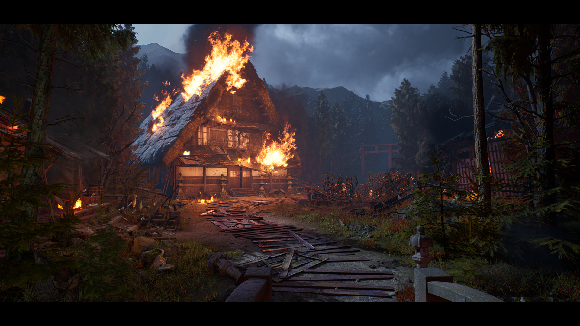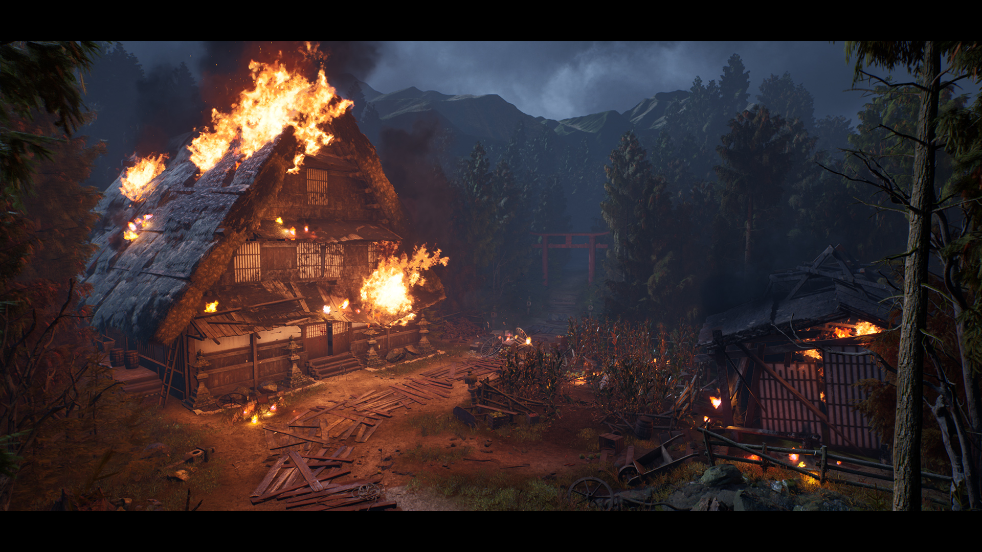 Turbosquid to create a Japanese forest village that was recently raided.